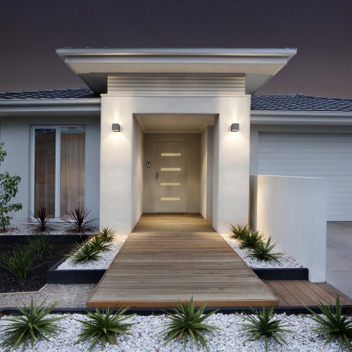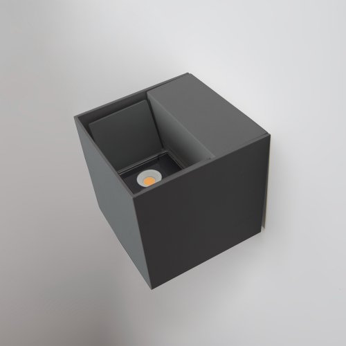 El diseño cúbico y el chasis de aluminio en color negro le otorgan un estilo moderno y elegante, mientras que su índice de protección IP54 asegura resistencia a las condiciones climáticas exteriores. La lámpara tiene un ángulo de apertura de 81° y se fija fácilmente sobreponiéndola en el muro. Funciona con un voltaje de operación de 100 V – 240 V y cuenta con un tipo de atenuación On/Off. Con un índice de reproducción cromática