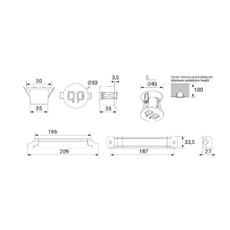 Fabricada en material ABS con un chasis de color blanco, esta lámpara de emergencia cuenta con un índice de protección IP 40, lo que la hace adecuada para diversas aplicaciones interiores. Su fijación de incrustar y su tipo de atenuación On/Off facilitan su instalación y uso. Funciona con un voltaje de operación de 110V-120V y tiene una vida útil de 30.000 horas, garantizando durabilidad y rendimiento a largo plazo. Con un índice de reproducción cromática (IRC) de 80