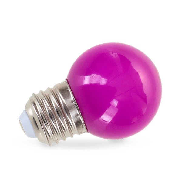 Descubre el Combo de Bombillo Ping Pong LED x10 en Violeta en LumenConcept.com. Perfecto para la decoración del hogar con tecnología LED vintage, 1W de potencia, base E27 y una vida útil de 25,000 horas