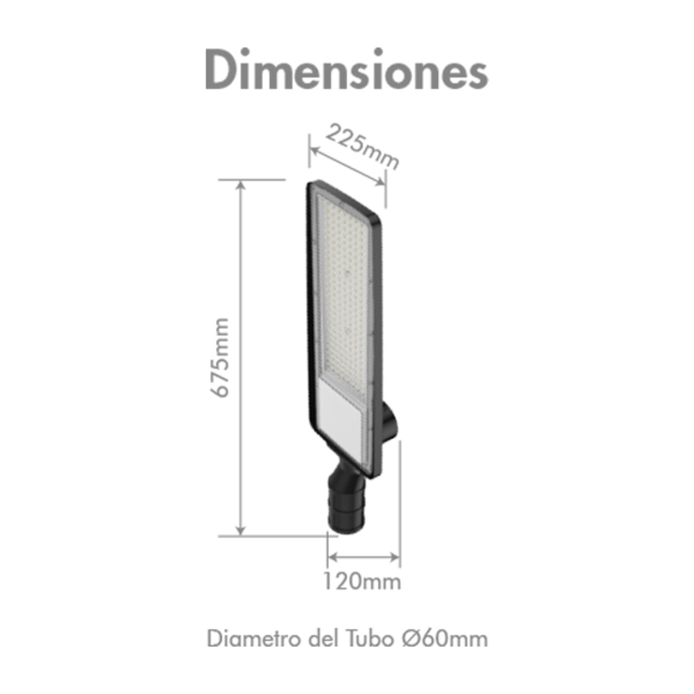 La Luminaria LED de Alumbrado Público 150W de ha sido diseñada para ofrecer iluminación confiable y de alto desempeño en vías, parques, conjuntos residenciales y entornos industriales. Su flujo luminoso de 19.500 lúmenes proporciona una luz potente y uniforme, optimizando la visibilidad y seguridad en exteriores.