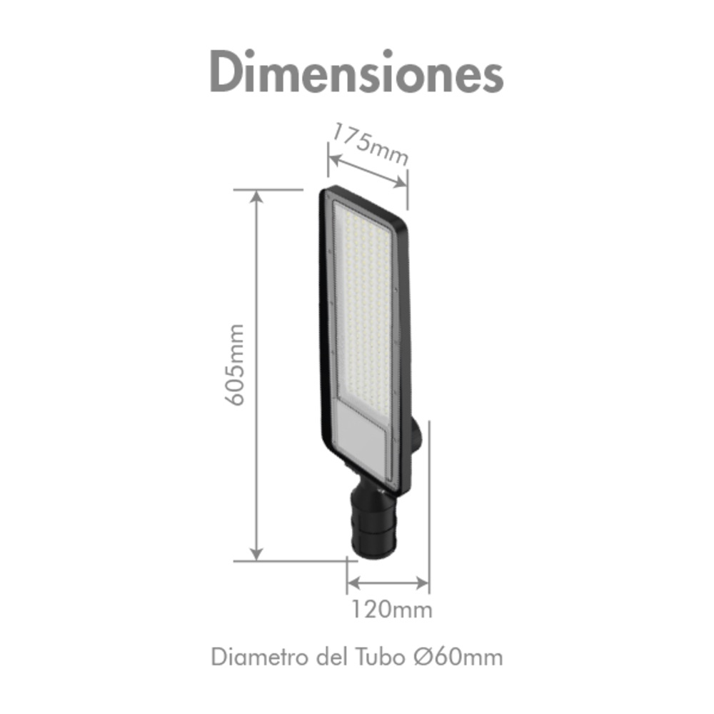 • Ofrece un flujo luminoso de 11.700 lúmenes, factor de potencia ≥0.9 y THD <20%, lo que se traduce en ahorro energético, luz estable y excelente reproducción cromática (IRC 80Ra). • Su brazo graduable entre ±15° permite ajustar la orientación lumínica según el entorno, con posibilidad de instalación horizontal (180°) o vertical (90°), adaptándose perfectamente a postes o brazos metálicos. • Gracias a su tecnología LED de última generación, esta luminaria reduce el consumo eléctrico y los costos de mantenimiento, convirtiéndose en una opción confiable y rentable para proyectos de iluminación pública, vial o industrial.