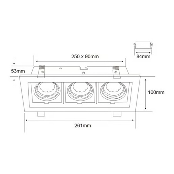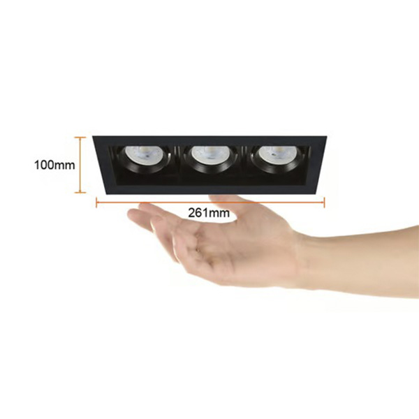 Con una base para portalámparas GX5.3/GU10 x 3, este luminario opera en un rango de tensión nominal de 100V a 240V, con un consumo de potencia de 21W y una frecuencia nominal de 50Hz/60Hz. Su temperatura de operación de 0° a 40°C lo hace adecuado para una variedad de entornos.