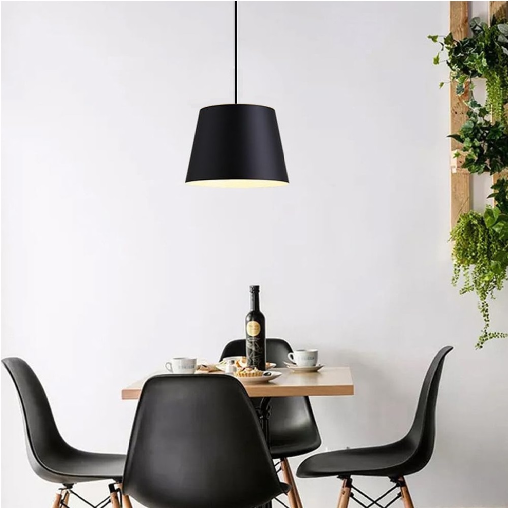 Descubre la elegancia moderna con nuestra Lámpara Colgante Metálica Trapezoidal Negra E27 (Sin Bombillo). Diseñada para realzar cualquier espacio, esta lámpara decorativa es perfecta para el hogar, ofreciendo un estilo contemporáneo con su forma redonda y acabado en aluminio negro. Su diseño descolgable permite una fácil instalación, mientras que su índice de protección IP 20 la hace ideal para interiores. Compatible con bombillos E27, esta lámpara te brinda la libertad de elegir la iluminación que mejor se adapte a tu ambiente. Añade un toque sofisticado a tu decoración con esta pieza única