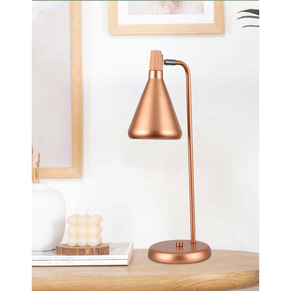 The Clementina Rose Gold Table Lamp is an ideal decorative piece for any space. This table lamp, belonging to the category of decorative lamps, stands out for its elegant conical design and its rose gold-colored chassis. Made with high-quality materials such as rattan and metal, this lamp does not include a bulb, allowing you to choose the light source that best suits your needs. With an IP20 protection rating and an operating voltage of 120V, the Clementina Rose Gold is both functional and aesthetic. Its dimming type is On/Off, making it easy to use daily. Add a touch of sophistication and warmth to your home with this unique table lamp