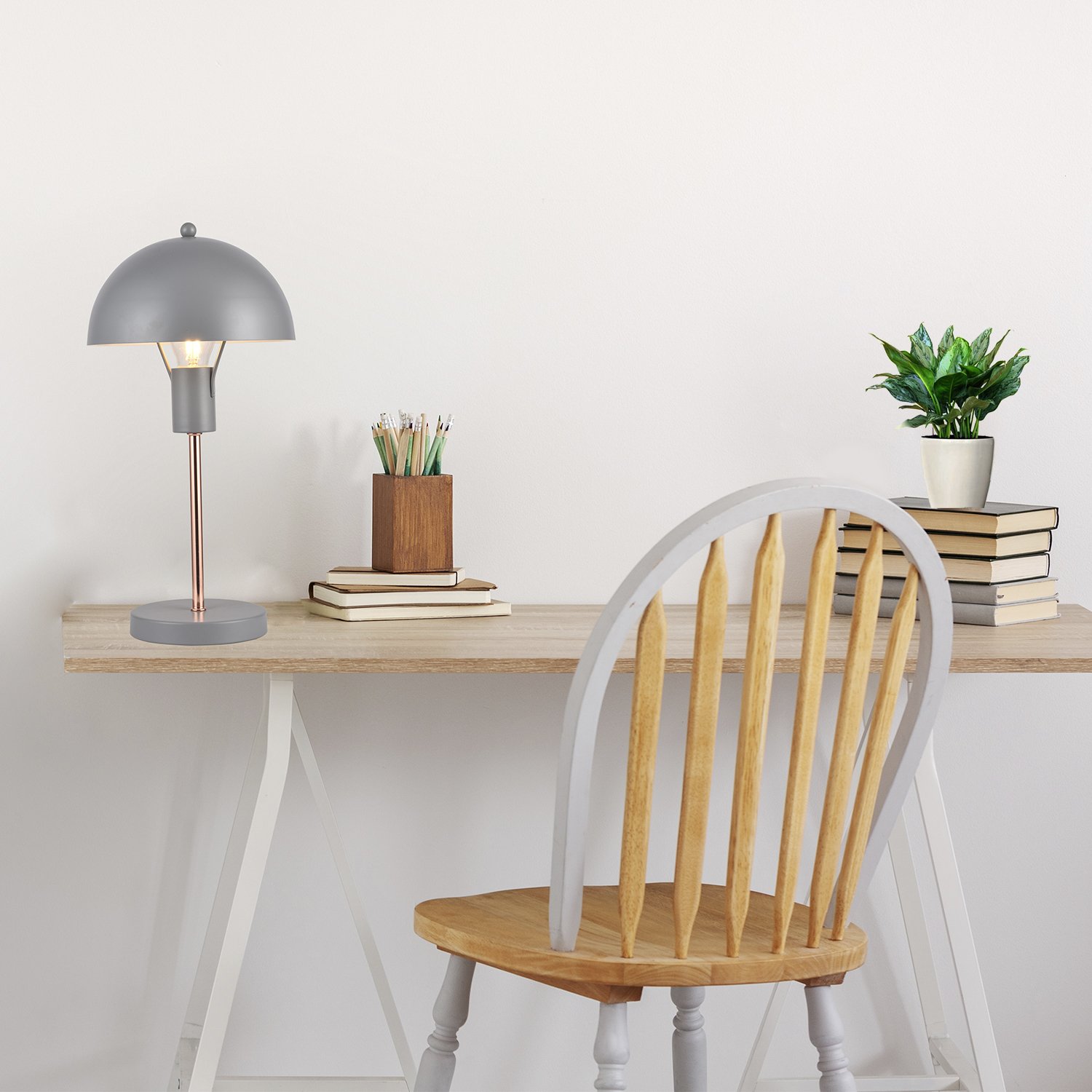 La Lámpara de Mesa Collet Gris es una elegante adición para cualquier hogar u oficina. Diseñada para ofrecer un toque decorativo, esta lámpara de mesa está fabricada en acero de alta calidad y presenta un chasis en color gris. Con un índice de protección IP20, es adecuada para su uso en interiores. Funciona con un voltaje de operación de 100-240 V y cuenta con un sencillo sistema de atenuación On/Off. Aunque no incluye bombillo, su diseño versátil y moderno la convierte en una opción ideal para iluminar y decorar cualquier espacio. Referencia del fabricante: MT40783-1