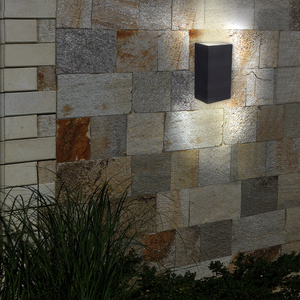 Descubre el Aplique de Muro Exterior Rectangular Negro Led Integrado Arriba/Abajo Rawenna con luz neutra. Perfecto para la decoración exterior. ¡Compra ahora en LumenConcept.com!