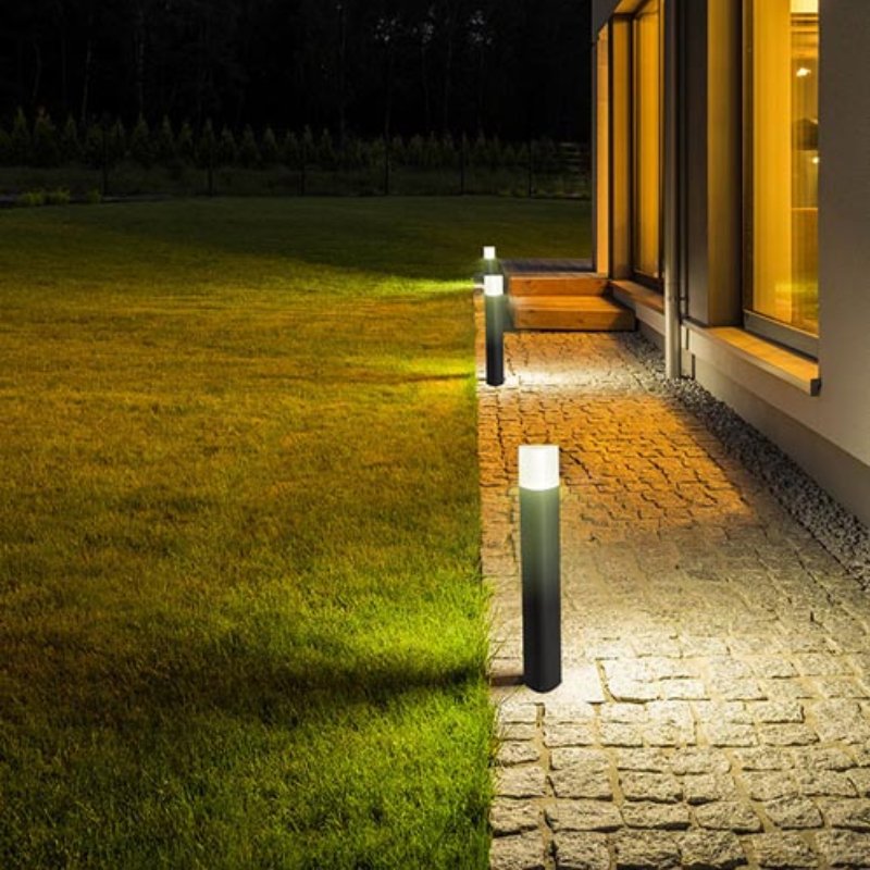 Descubre el Bolardo Mandela de 80 cm, perfecto para la iluminación de jardines exteriores. Fabricado en aluminio duradero, chasis negro y protección IP44. ¡Compra ahora en LumenConcept.com!