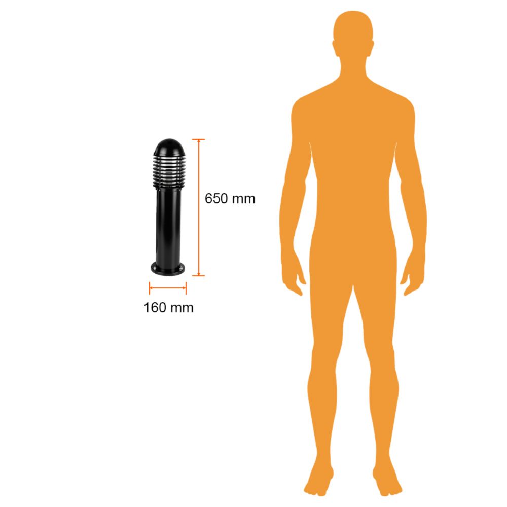 Descubre el Mini Poste Negro de 65cm para bombilla E27 en LumenConcept.com. Perfecto para la iluminación de jardines, esta lámpara exterior de aluminio negro ofrece protección IP44. Bombilla no incluida