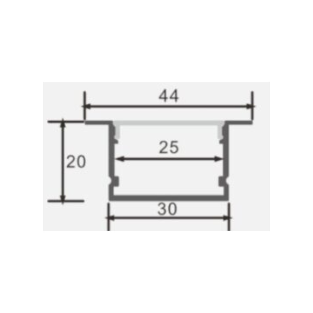 Perfil para Cinta Led de Incrustar Color Gris 3.0×2.0x300 cm
