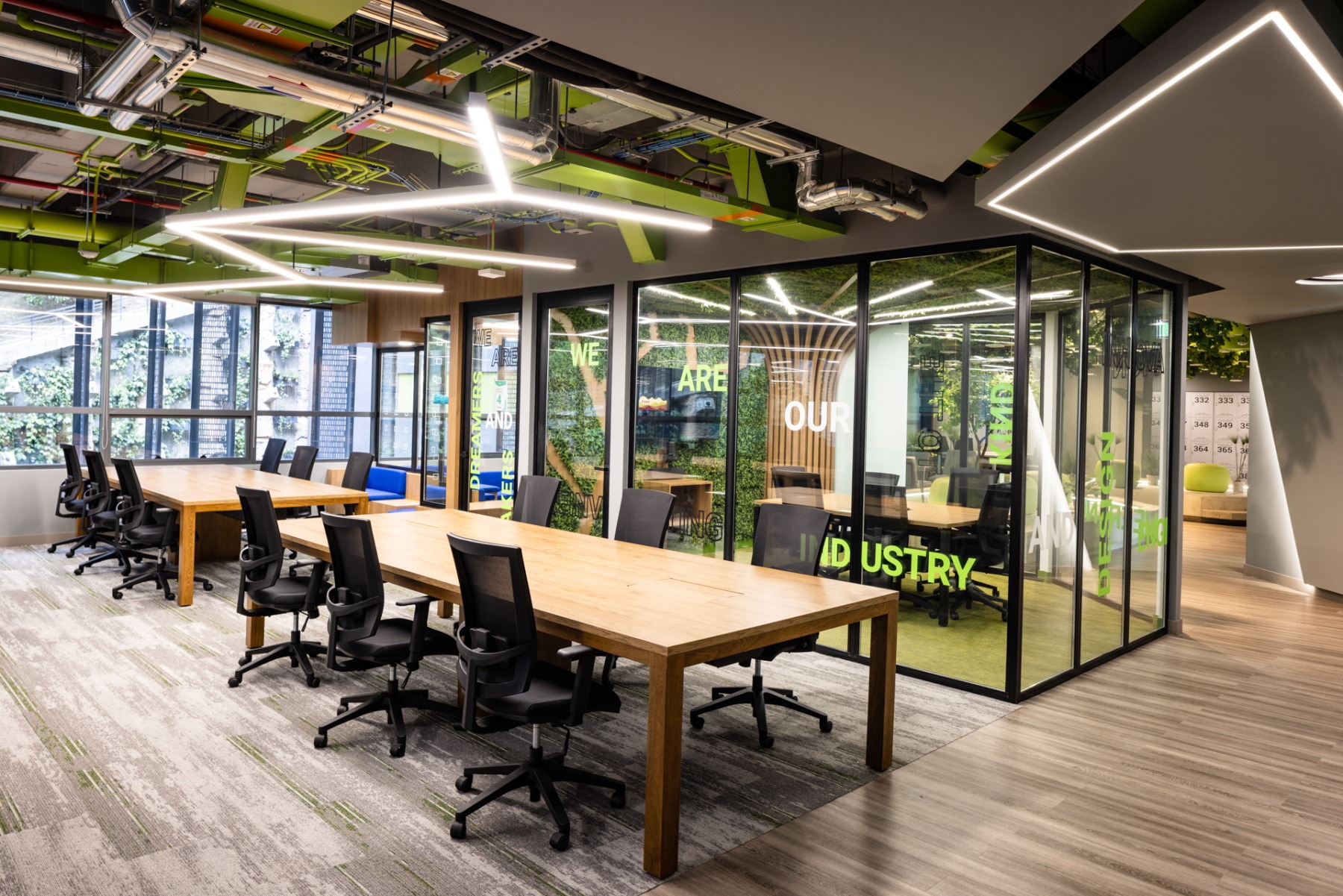 La distribución espacial de este proyecto, pensada para romper con lo convencional, se complementa a la perfección con un diseño de iluminación que realza cada rincón. Nuestras luminarias no solo iluminan, sino que definen los espacios, creando un recorrido visual que te invita a descubrir cada detalle. La combinación de formas y colores en las luminarias se integra a la perfección con la arquitectura, generando un ambiente único y memorable