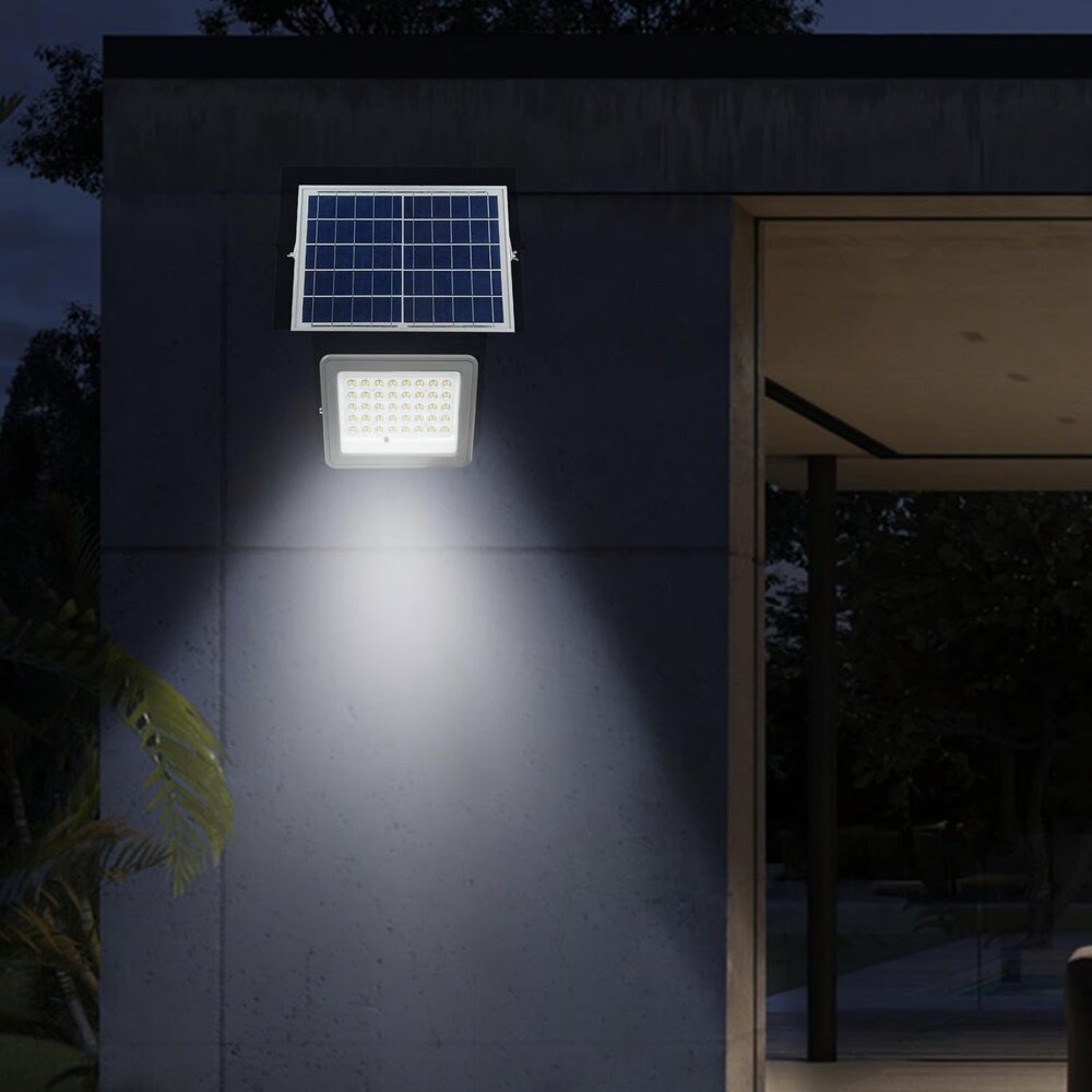 Ilumina tus exteriores de manera eficiente y segura con este reflector solar de 100W. Equipado con un sensor PIR (detector de movimiento), se enciende automáticamente al detectar presencia, ofreciendo seguridad y comodidad. Controla fácilmente el reflector con su mando a distancia, ajustando la intensidad de la luz gracias a su función dimerizable.