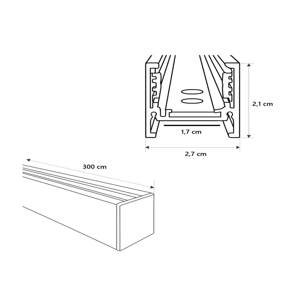 Riel Magnético Minimalista – Tramo de 3 Metros (Sin Aleta)