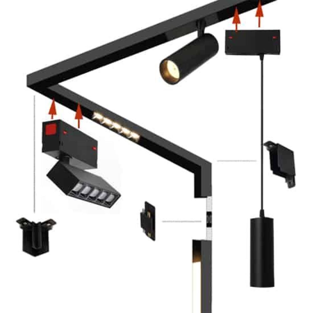 • Seguridad: Permite colocar y mover luminarias con el riel encendido sin riesgo eléctrico.