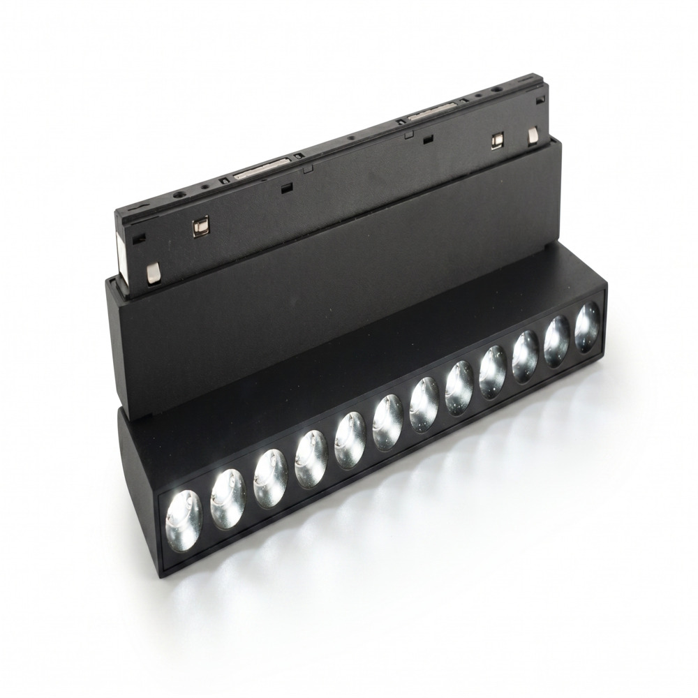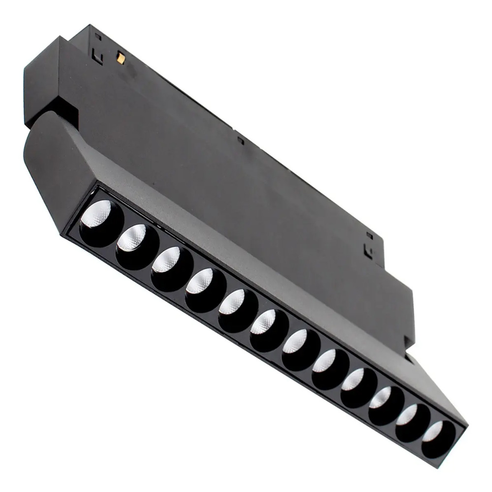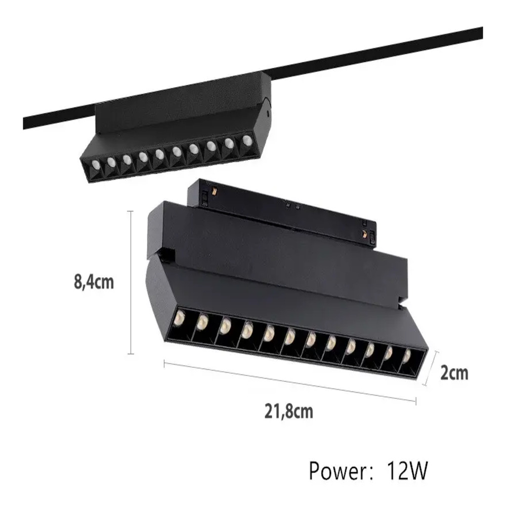 Ilumina tus espacios con versatilidad y diseño minimalista. Este perfil de 22 cm cuenta con 12 lentes de alta precisión que ofrecen una iluminación focalizada y elegante. Gracias a su sistema plegable, permite dirigir la luz exactamente donde la necesitas, integrándose perfectamente en rieles de 48V. Disponible en temperaturas de color de 3000K y 4000K para crear ambientes cálidos o neutros con un consumo eficiente de 12W.